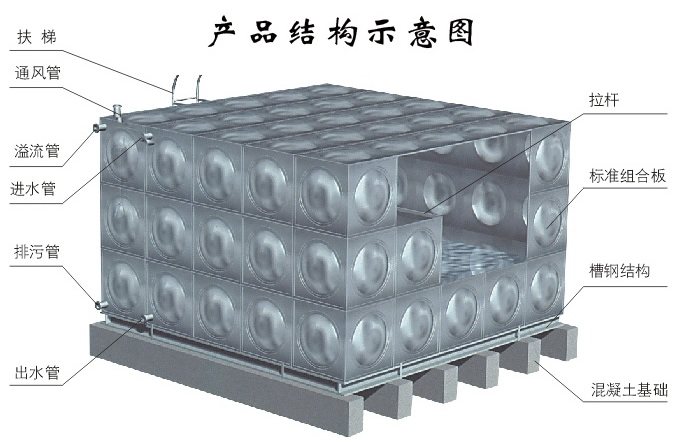 中贏不銹鋼水箱線條流暢、造型獨特。采用單元矩形不銹鋼成型薄板拼裝焊接組成,可根據現場結構,不同的尺寸要求,不同的噸位,任意組合成多邊型、階梯型、L型等形態各異的水箱。耗材較少,無需大型吊裝設備。